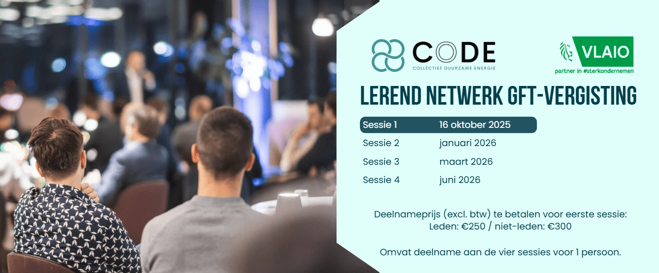 CoDE is een samenwerking tussen Biogas-E, COGEN Vlaanderen, Flux50 en ODE Vlaanderen. Benieuwd naar wat er nog allemaal op de agenda staat? |